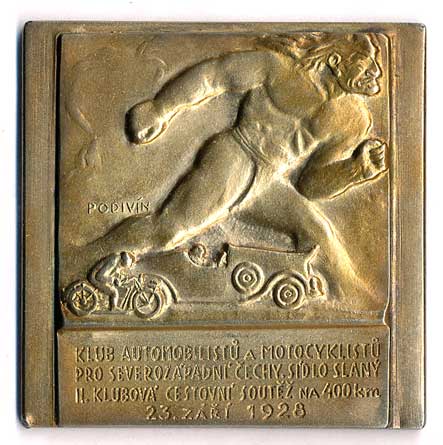 soutěž na 400 km, alegorie větru, automobilu a motocyklu, zlac.Ag? 46x46/52g, hrana,
