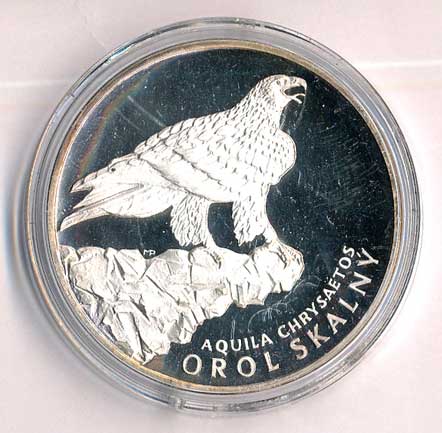 1524. Orol skalný - medaile ze série "Blíži sa rok 2000", 1999-orel sedící na skále, opis /