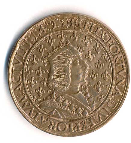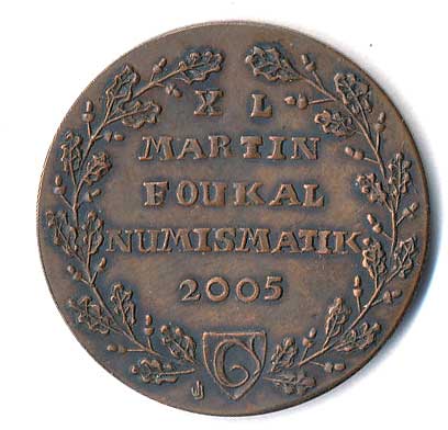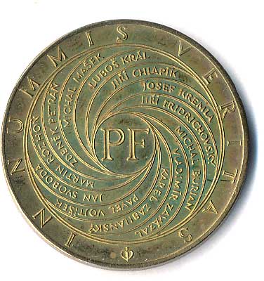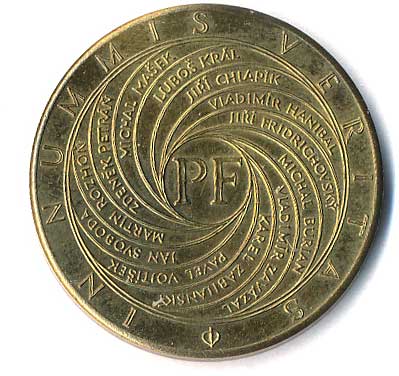 PF, z něho vystupující jména, opis IN NUMMIS VERITAS, Br30, (Oppl Vladimír)