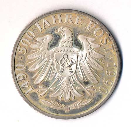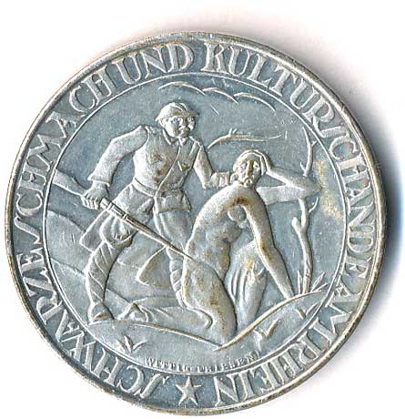 slouží už jen jako památník, údajně Ag800, 40mm, 24,2g, patina