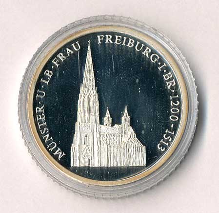 1572. Výstavba katedrály ve Freiburgu 1200-1513-katedrála, opis / anděl s erbem,