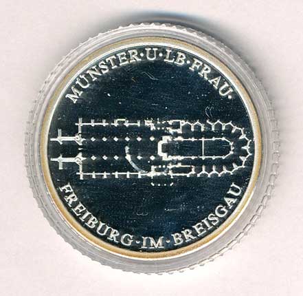 1574. Katedrála ve městě Freiburg im Breisgau - půdorys katedrály, opis / erb, ratolest,