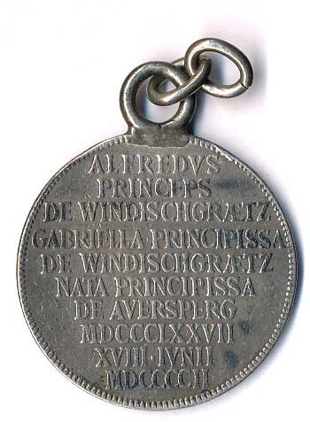 1579. A.Windischgrätz a G.Aversperg - žeton na stříbrnou svatbu 1902, rodové erby /