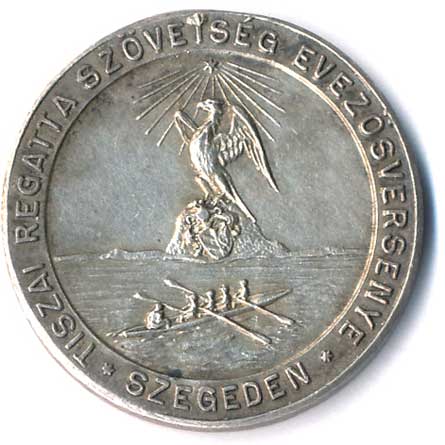 1580. Szeegeden (Segedín) - veslařská soutěž na řece Tise-veslaři na vodě, orel na skále