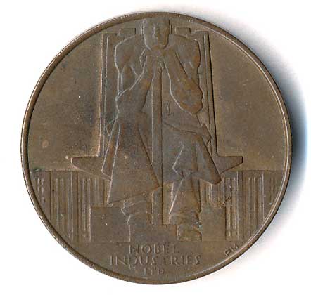 1581. Společnost Nobel Industries-Dělník s palicí sedící na kovadlině, třířád.náp. / text: