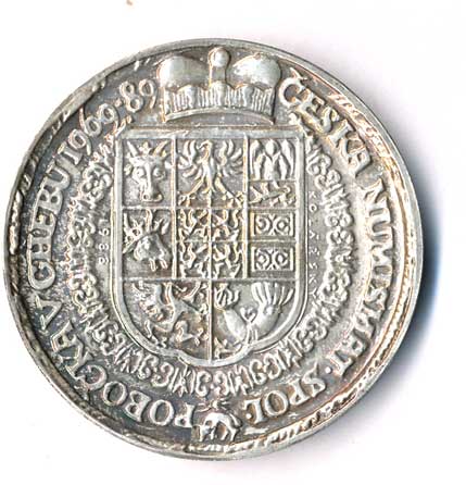 1589. ČNS Cheb 1989 - tolar - Albrecht z Valdštejna mírně zprava, opis / korunovaný