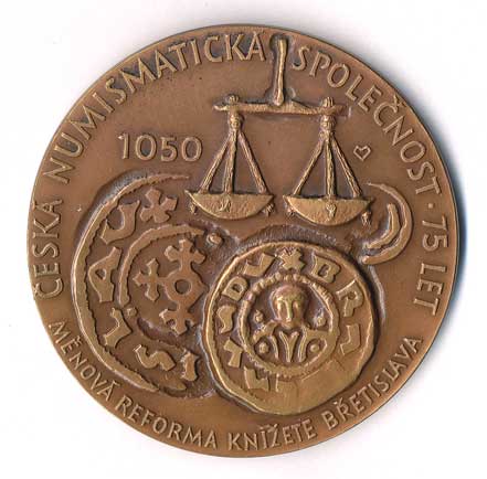 1591. ČNS-75 let-měnová reforma knížete Břetislava I. - mince, váhy, opis / hlava čelně
