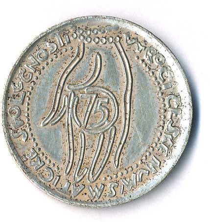 1592. ČNS Praha - medaile k 75.výročí založení - mince s číslicí 75 na dlani, opis / replika