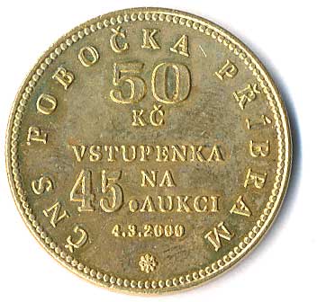 1599. ČNS Příbram-50kč vstupenka na 45.aukci 4.3.2000-čtyřřád.náp.,číslice, datace, opis /