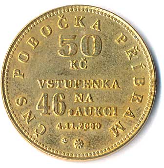 1600. ČNS Příbram-50kč vstupenka na 46.aukci 4.11.2000-čtyřřád.náp.,číslice, datace, opis /