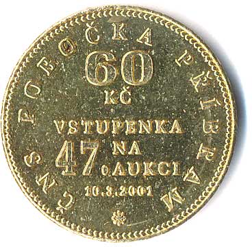 1601. ČNS Příbram-50kč vstupenka na 47.aukci 10.3.2001-čtyřřád.náp.,číslice, datace, opis /