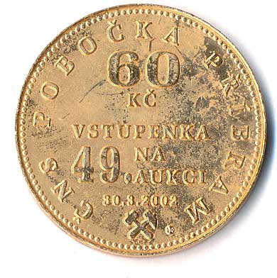 1603. ČNS Příbram-60kč vstupenka na 49.aukci 20.3.2002-čtyřřád.náp.,číslice, datace, opis /