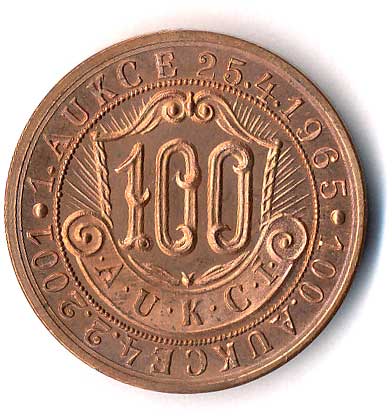 1606. ČNS Hradec Králové-100 aukcí-1.aukce 25.4.1965-100.aukce 4.2.2001-číslice sto,
