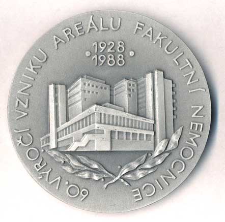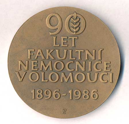 1609. 90 let fakultní nemocnice v Olomouci 1896-1986 - mužská tvář nad budovami,