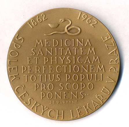 1610. J.E.Purkyně - Spolek českých lékařů, 100 let 1862-1962 - poprsí zleva, opis / had
