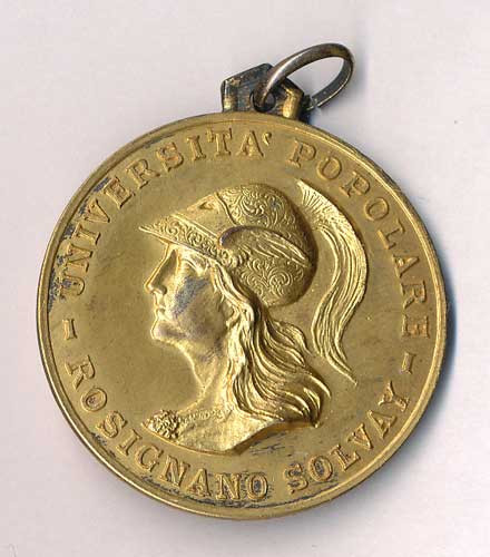 1615. Záslužná medaile "Universita Popolare" ve městě Rosignano Solvay - hlava v korintské