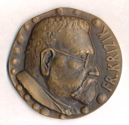 František Křižík- hlava zprava, opis / emblém VŠSE, opisy, Br70, etue