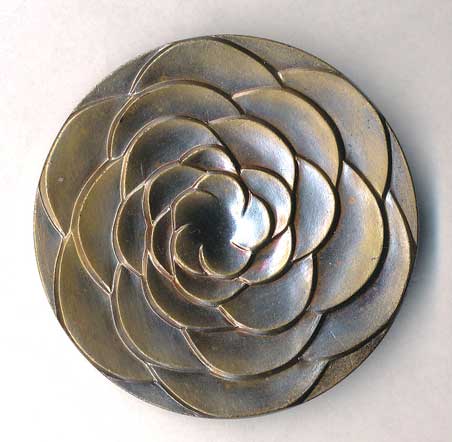 soví hlava, nápis, opis / rozvitý květ, Br51, etue