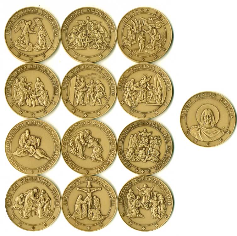 1621. Život Ježíše Krista - výjevy ze života Krista, opisy / poprsí Krista, opisy, 12 medailí,