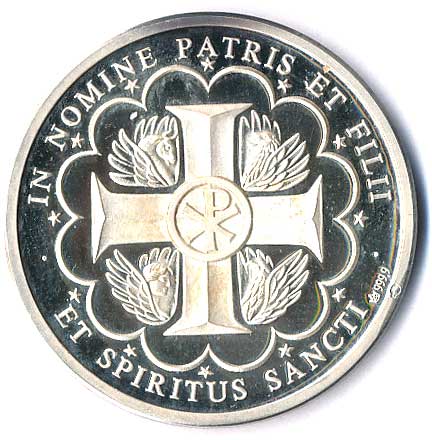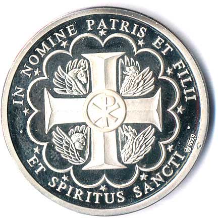 kříž, latinský opis, Ag 999 35/15g, začínající patina, etue