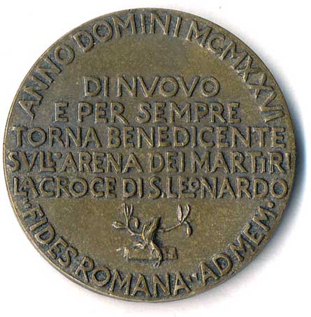 1626. Řím FIDES, medaile přátelství 1926-kříž sv.Leonarda v koloseu ratolesti / pětiřád.
