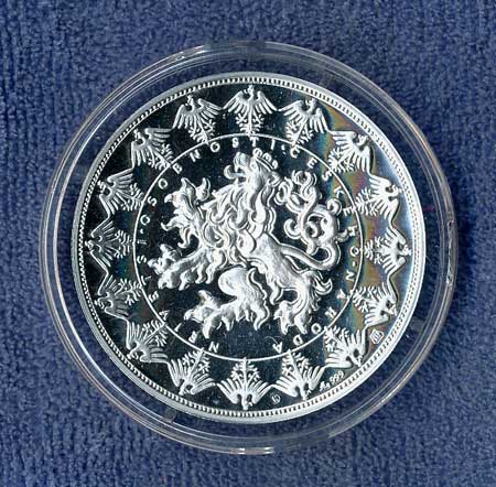 přilbě zleva, opis, zlac.Ag40/18,9g, původní etue