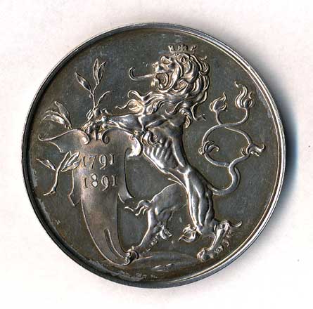 1662. Zemská výstava 1891 - lev s praporem, datace / dvojjaz.náp., Ag36/25g, patina 0/0 3200,- --.-