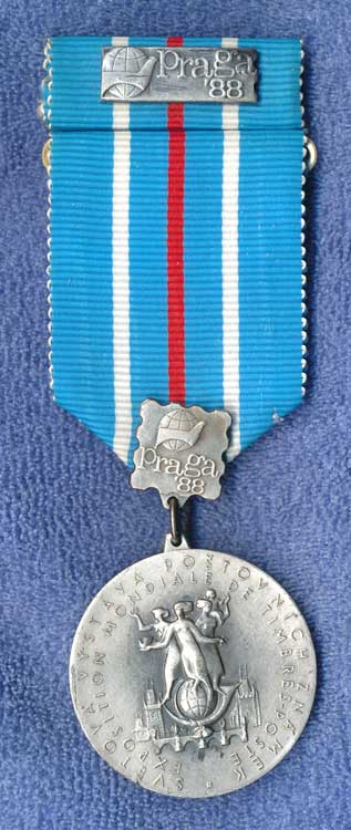 1664. Výstava poštovních známek PRAGA 88 - stříbrná záslužná medaile se stuhou,