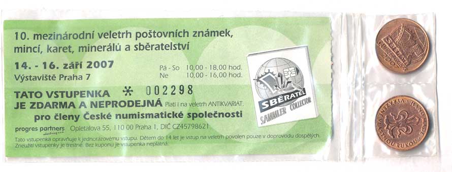 1666. 10.mezinárodní veletrh poštovních známek-papírová vstupenka, 2x žeton, Cu20, vše