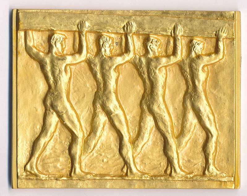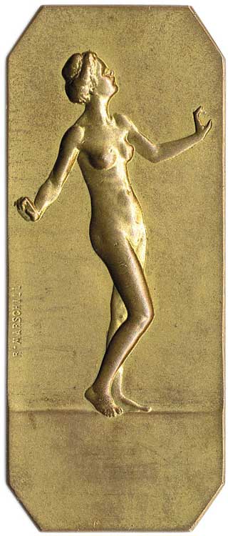 25.výr.založení - ženský akt, sign.R.Marschall / 16 řád. náp., zlac.Br31x75, patina