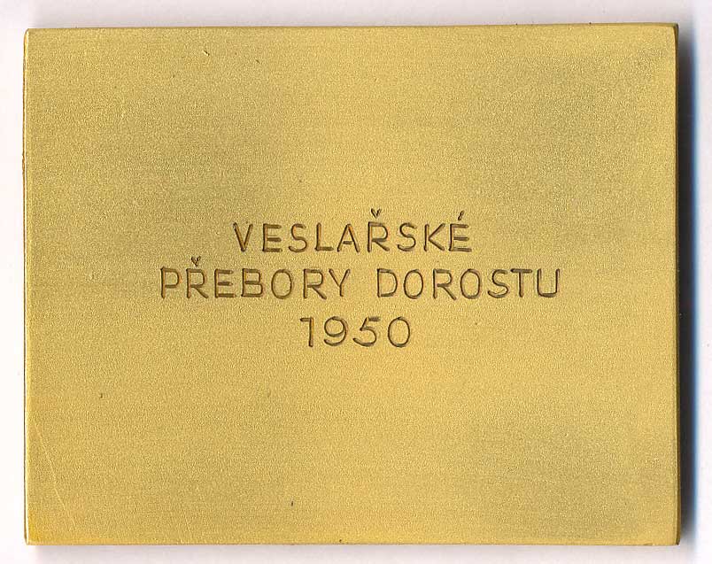 1669. Veslařské přebory dorostu 1950-čtyři sportovci nesoucí pramici, zlac.Br50x63, etue 0/0 300,- --.-