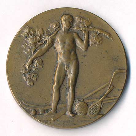 nahý cvičenec s ratolestí, pod ním sportovní náčiní / pětiřád.náp., datace, sign.PICHL,