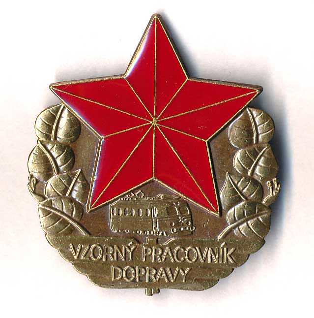 1686. Vzorný pracovník dopravy-rudá hvězda, tramvaj, náp., ratolesti, Br44x49, špendlík 0 100,- 130,-