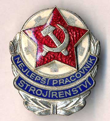 1692. Odznak "Nejlepší pracovník strojírenství", smalt, stříbř.kov 25x31, špendlík 1/- 100,- --.-