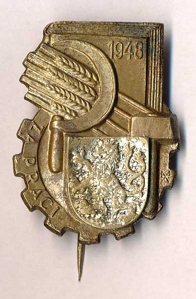 1694. Čestný odznak "Za práci" 1948, Br, jehla, (opravená), MV 26 1/- 200,- --.-