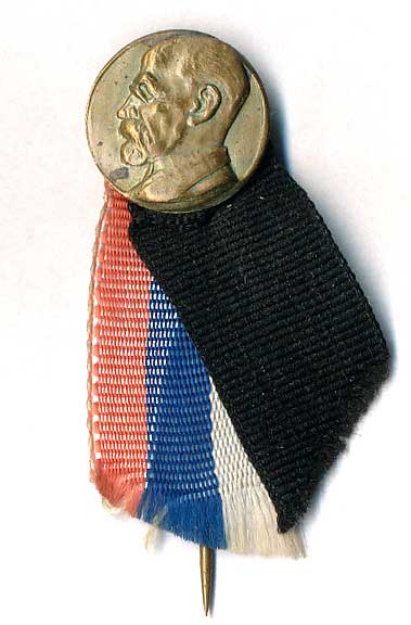 1697. Smuteční odznak k úmrtí T.G.Masaryka (1937) - poprsí presidenta, trikolórní a