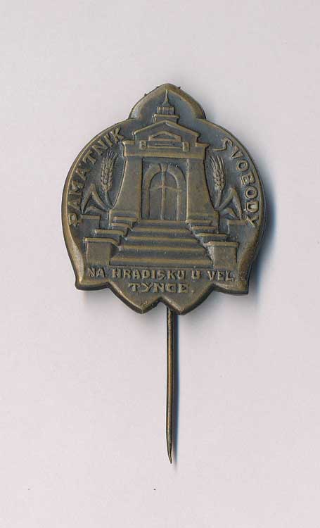 1698. Odznak "Památník svobody na hradisku Velký Týnec", Br, jehla 1/- 50,- --.-