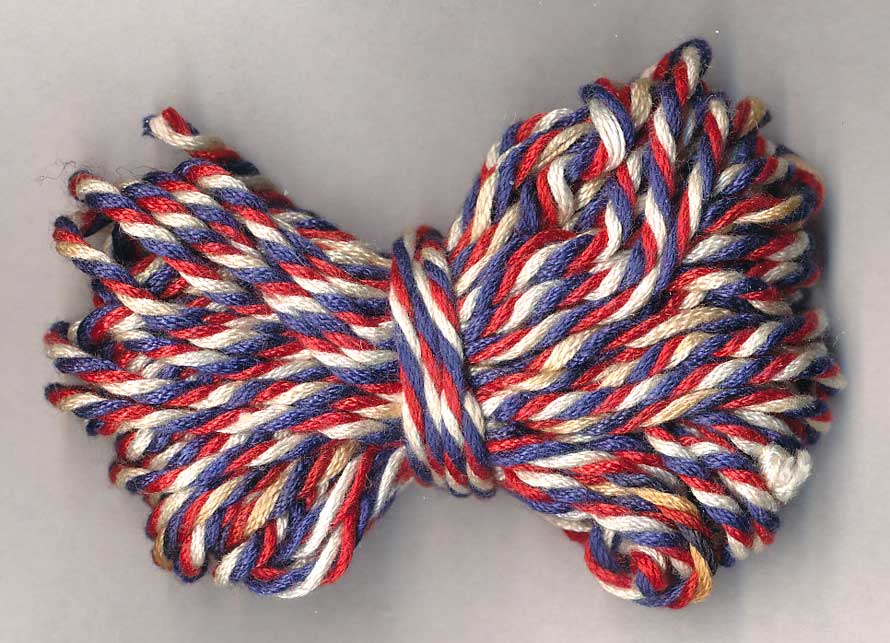 1702. RČS - bavlněná trikolórová šňůra na závěsné medaile (Sokol, vojsko atp.), cca 10 metrů zachov. 70,- 70,-